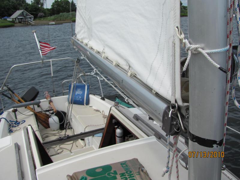 This is probably a dumb question. For reefing, I now use a hook on the forward end of the boom. I would need to rig lines up for the forward end instead. My main has slugs that slide in the slot on the mast. Currently when I reef, I pull the plug out of the slot so the bottom couple of slugs can slide out. Is this not necessary? When I rig up a forward reefing line, should I be able to pull it tight with all of the slugs plugged up above the opening for the boom gooseneck?