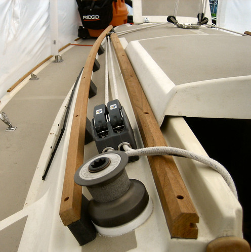 There is not much space between the hatch and the deckrails on this boat to run the lines. How have other people solved this problem? I was thinking of mounting deck organizers on blocks of wood so that the lines clear over the top of the rail and hatch.