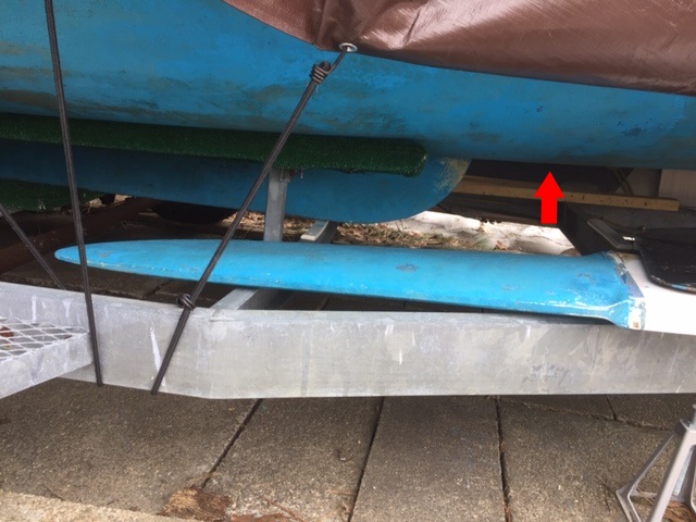 Mr Dave, Thanks. Yes, I already suggested that, its been out the water 6 weeks and they are having none of it. They want to test the DNA or whatever of the dead mussels so they can advise the prior body of water in OK that they have issues. I was actually considering removing the rear axle of the trailer which seems to be very easy, just 4 U bolts. Then jacking up/ supporting the trailer. this should allow me free access to the centerboard housing area once I remove the center running board which is supporting very little weight. IE the weight would be supported by the trailer bunks entirely.