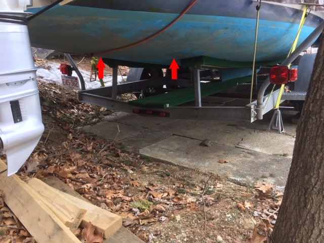 My thought was to raise the boat with 4 boat stands. I can fit the stands both fore and aft of the trailer bunks. I have attached 2 pictures of where I'd like to position them.