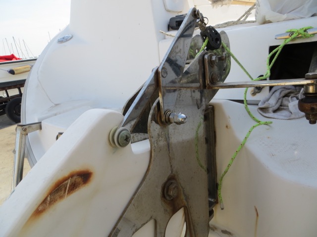 Thanks Dave, really appreciate all help othis one, I also found this thread by a google search as a search on the site didn't produce anything. http://forums.sbo.sailboatowners.com/showthread.php?t=119978 the photos do show the pulley underneath the lifting arm which may help hold it down and I will check tomorrow. If this does not work will take some pics of how it currently is and post later.