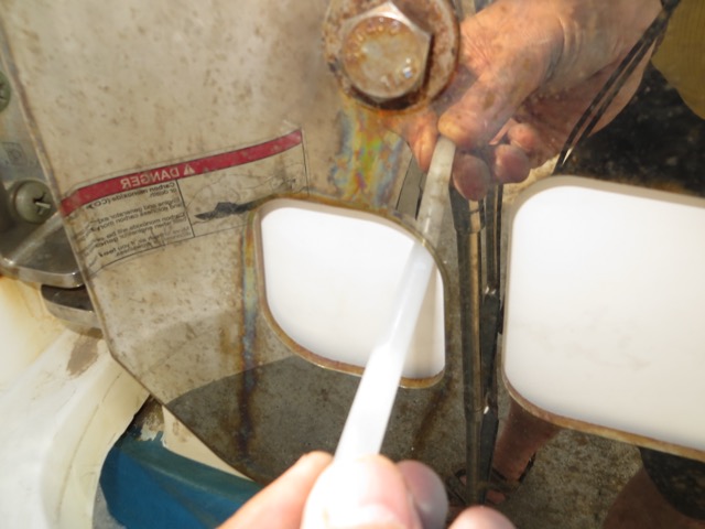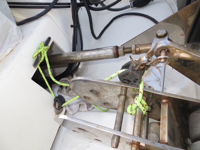 Eddie Breeden(Marlow-Hunter after sales) also came back again earlier and suggested drilling a new hole using a Delron cotter pin to hold rudder down that should hopefully shear on rudder contact, he has been great with help on MSO also.