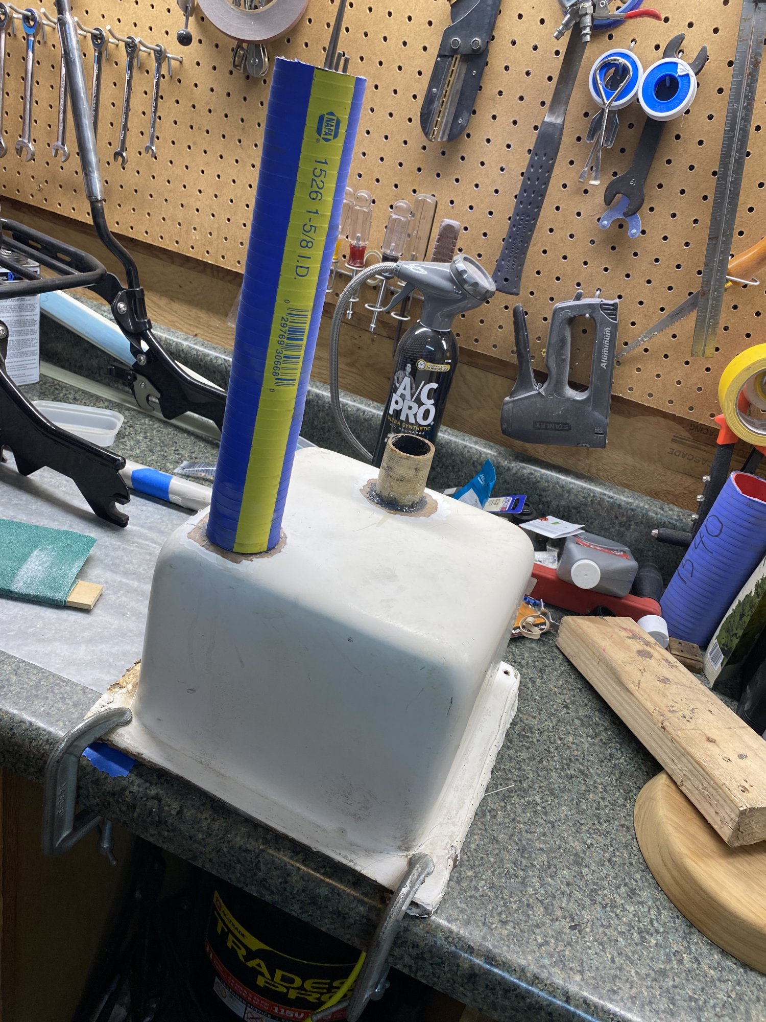 The muffler is finished… well I need a new drain screw but that’s just a trip to the hardware store before I hit the boat next time. I also rebuilt the spare water pump I found in the boat. That was a joy! I got a complete kit from Stay Cool Pumps, which was more complete than the kit from CD and 1/2 the cost. Someone at one point in this pumps life put the seals in backwards! That made it a fun adventure to get the inner one removed. I had to split it with a chisel then pry it out. Had it been put in correctly I could have knocked it out with a punch. Oh well a little bit if filing was needed to clean up the damage from the chisel. Next the grease pot was missing, and I discovered what was left of the grease pot stuck in the threads of the pump… ok a 1/8-27 npt tap and some patience and I now have a zerk fitting to grease the pump. The guy from Stay Cool Pumps recommended using the zerk over the grease pot.