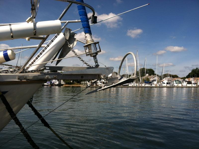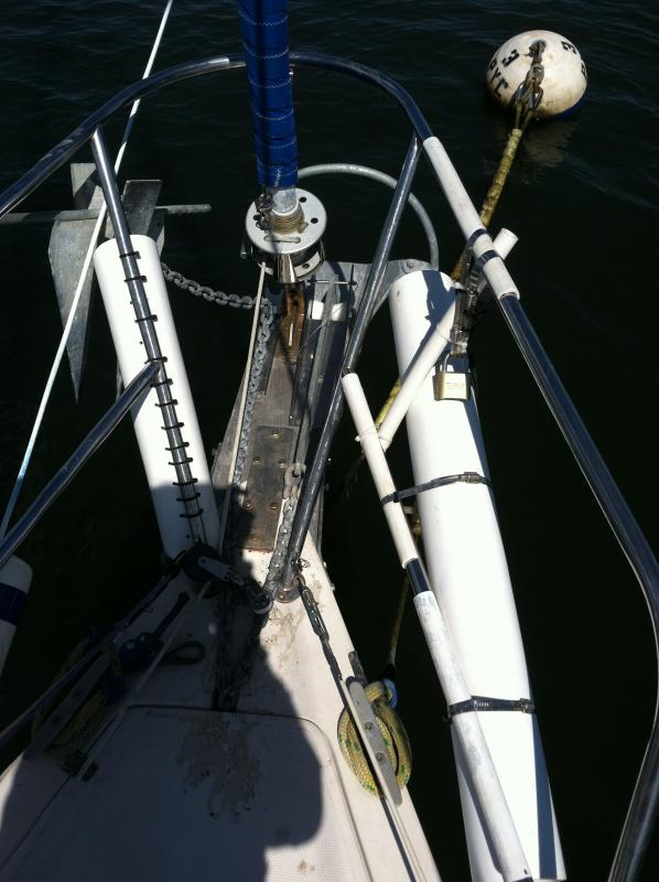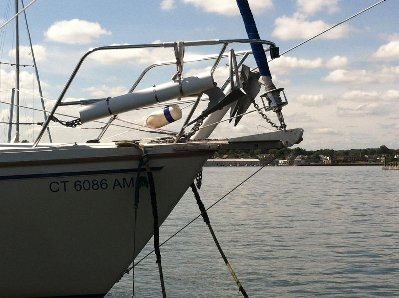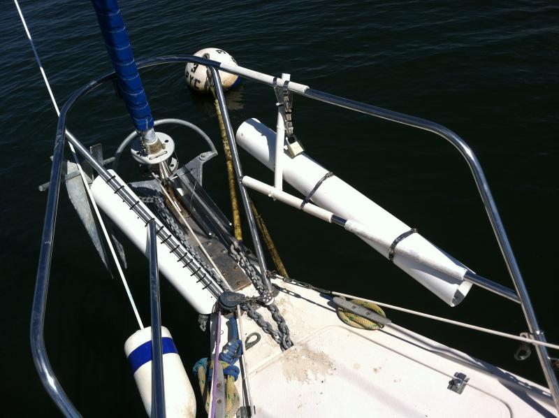 To all who have or want to have a Mantus Anchor and wonder how to mount on the bowsprit. (I have a 1984 Catalina 30 Tall Rig) I am on a mooring at our club and do not want the large fluke of the anchor anywhere near the mooring pendants. I also do not want the 35lb Mantus to be on the anchor roller I got, except when I am retrieving the anchor. When it gets to the roller, I generally remove it from the roller and stow it in my 4" PVC tube. Photos will be more than the several thousand words I could say. Any questions, let me know.