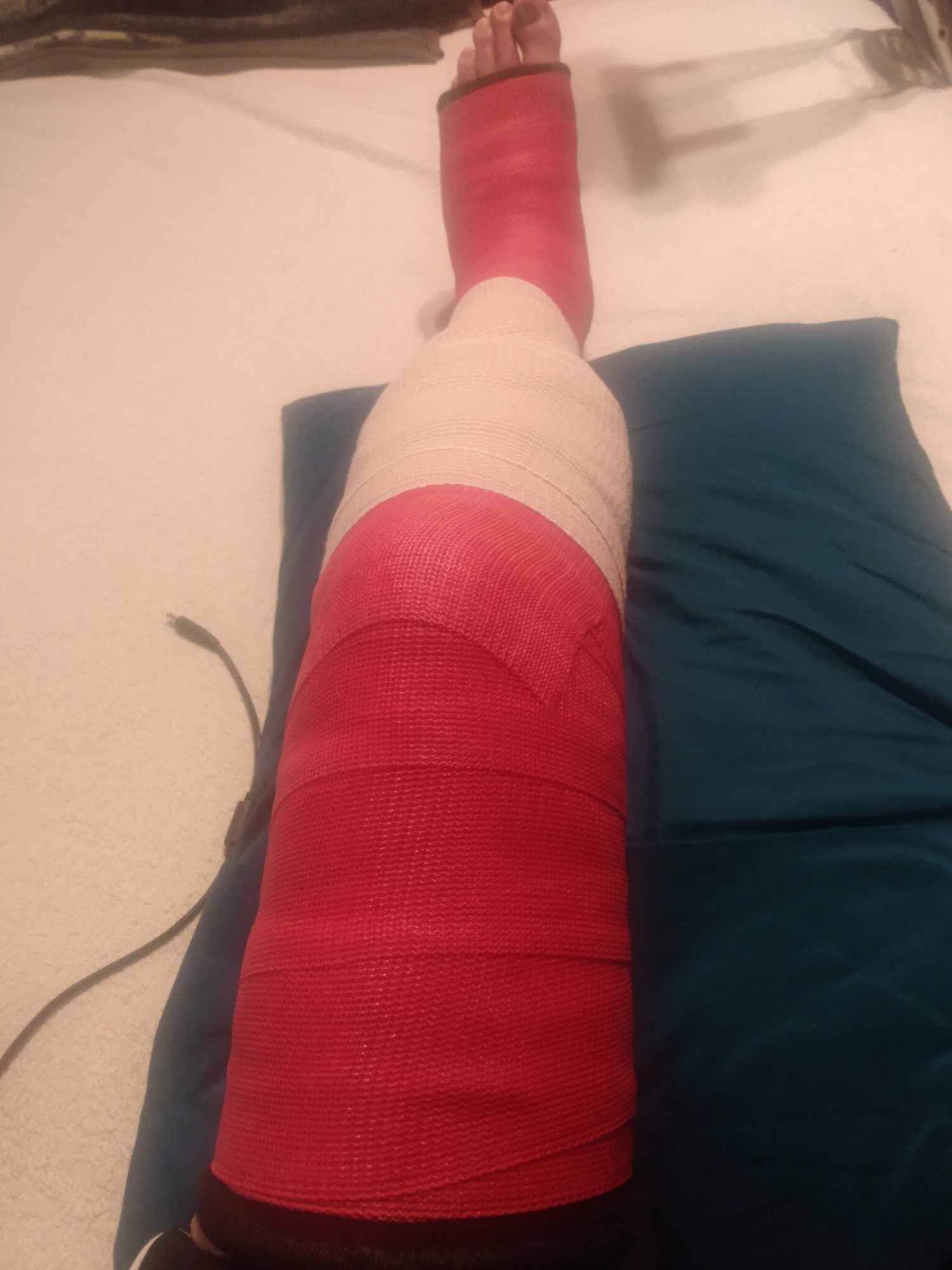 Sorry. I forgot to take a picture of the blue cast. But here is the holidays cast. Unfortunately, it has to stay on until January 9th. Ugh. I MISS SAILING!!!!!! :banghead::banghead::banghead:
