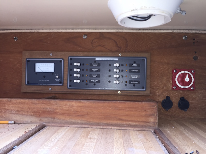 I didn't put the battery switch in the teak panel as the heavier wires would make it much more difficult to open the panel for working on the back side of it.