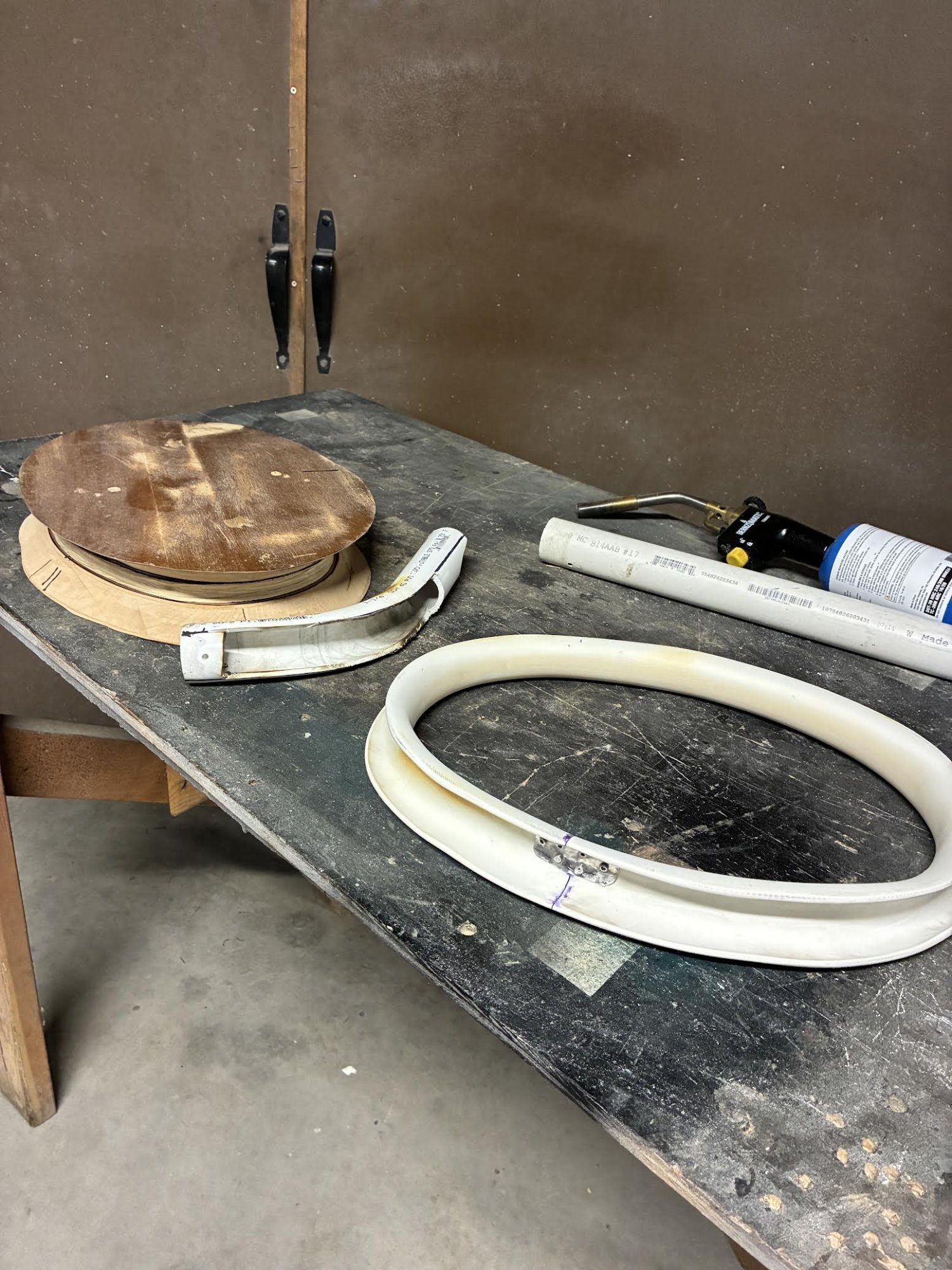 Nice looking sprit! And kudos on bending the plastic pipe. If you think working temperature is around 200ºF would putting the pipe in boiling water (212º) be easier & safer than using a butane torch? Since it looks like you made a form to shape it around an epoxy/fiberglass ring would have been easy to do too.