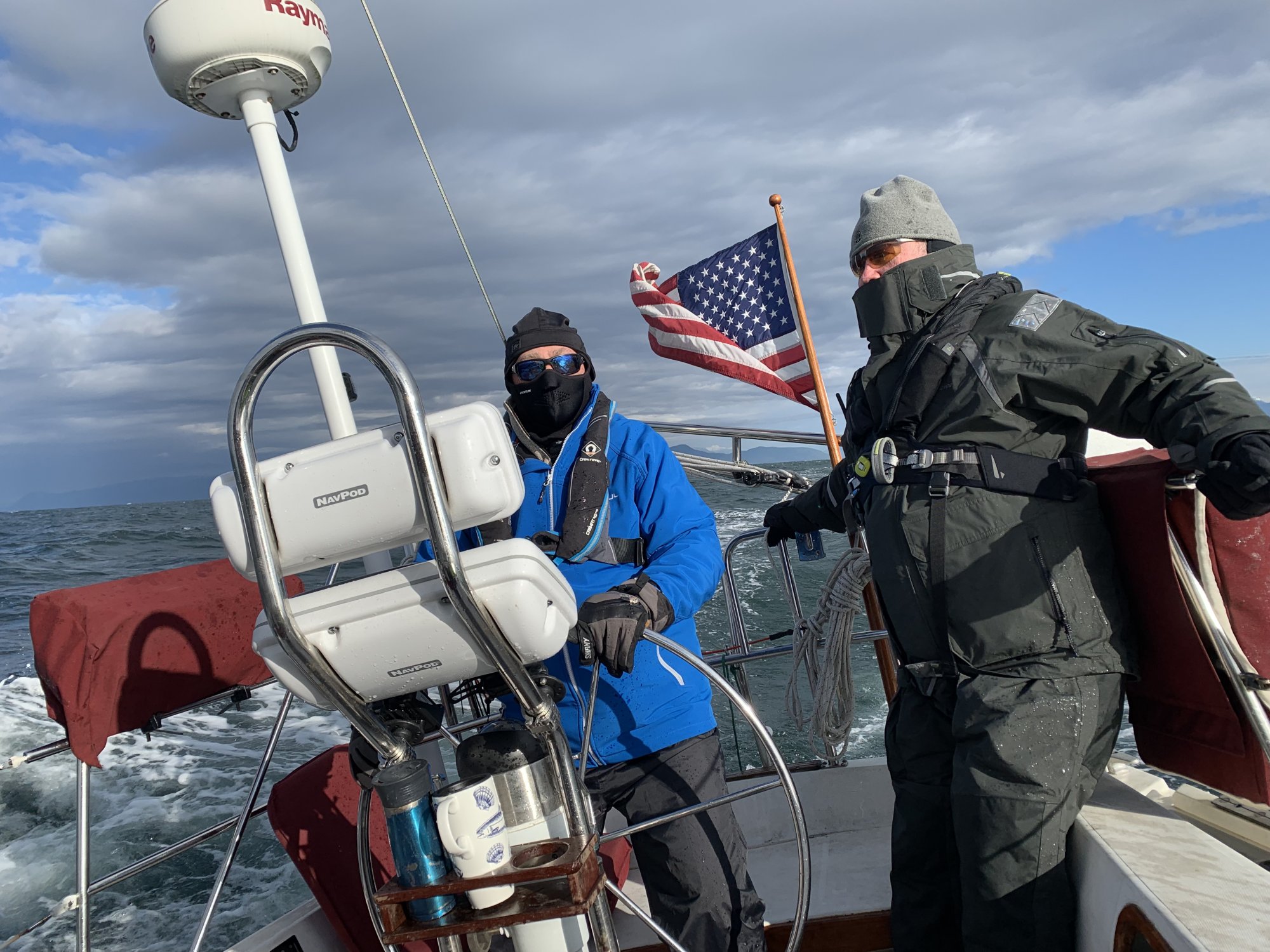You definitely can sail from inside. If you go a knot slower , I'd rather do that for a bit longer ,than freezing and wet at a knot faster. My wheelhouse gives me far more floor space aft , allowing more flexibility in interiors ,and less distance to climb down from the cockpit in rough weather, a big safety factor.