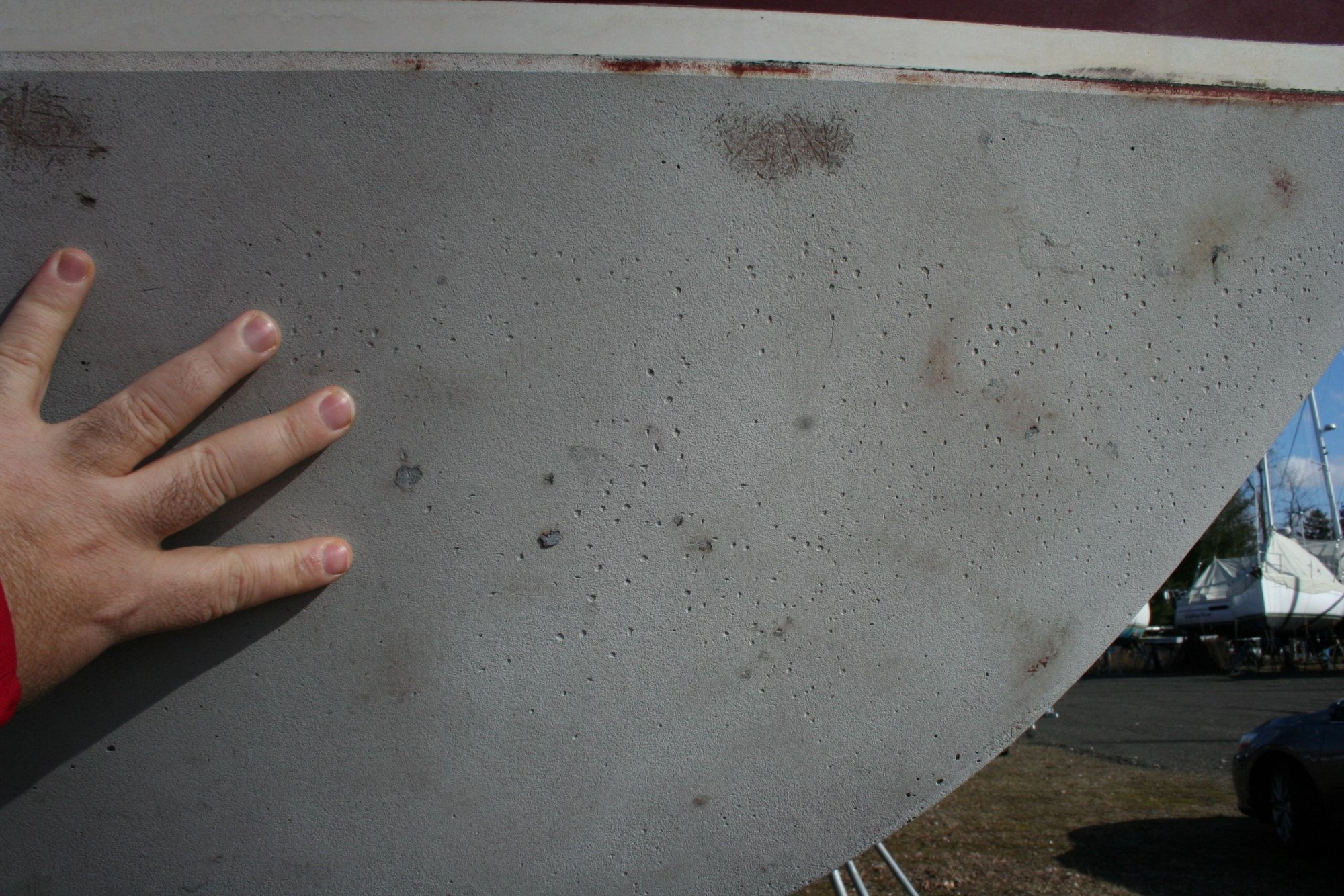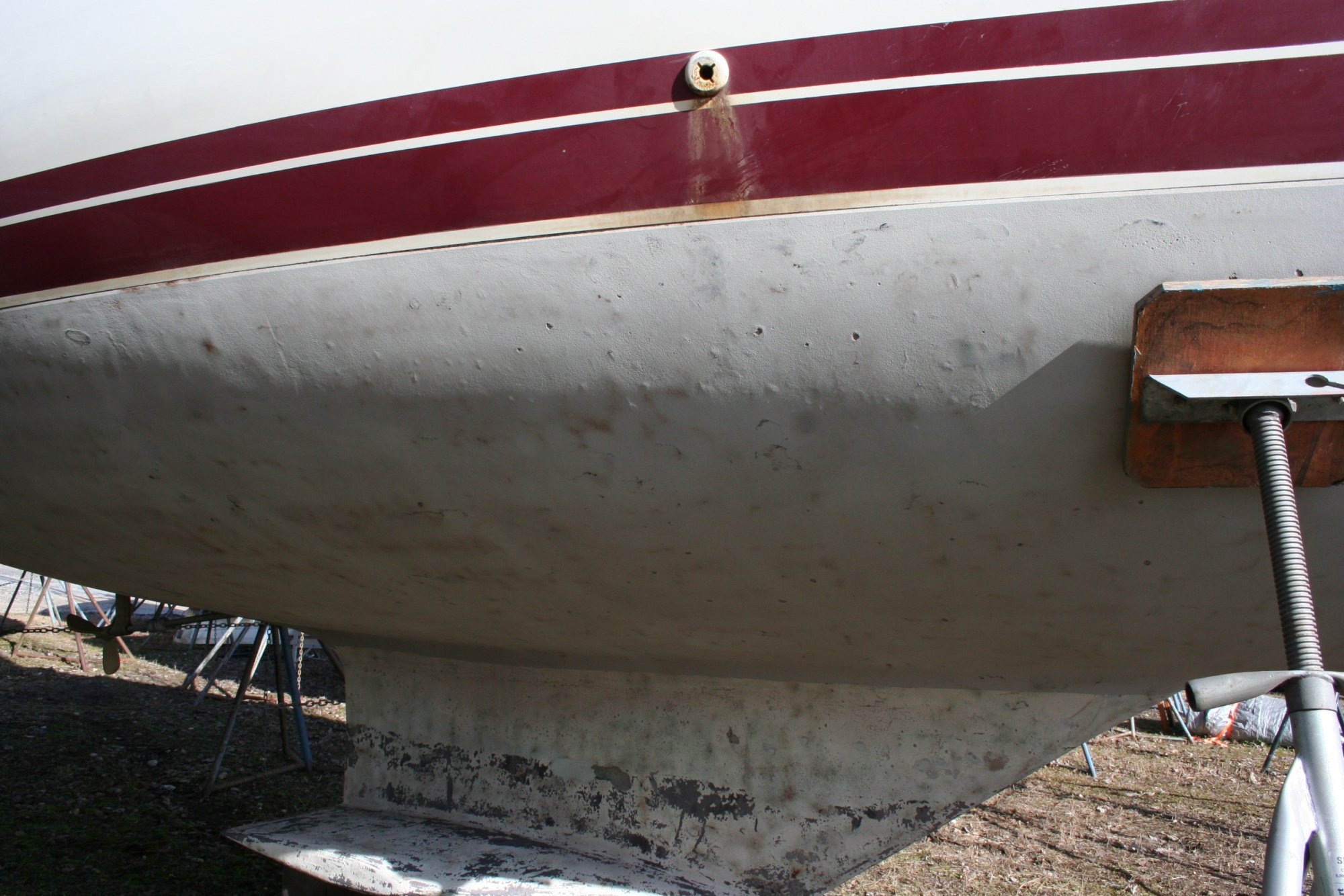 I figured it'd be loaded, not knowing how how many dips and chips there'd be, which would equate to how much compound would be required/used. I think I may by two quarts just in case, to be sure that I have them on hand, no need to re-order, etc. I was concerned whether I should epoxy the chips first, then apply fairing compound, etc. so I wrote to Pettit as well asking advice. They replied with: Sand, clean with Pettit 92 Bio-Blue cleaner, fair, two coats of the Pettit Protect, two coats of the Hydrocoat or Odyssey antifouling.