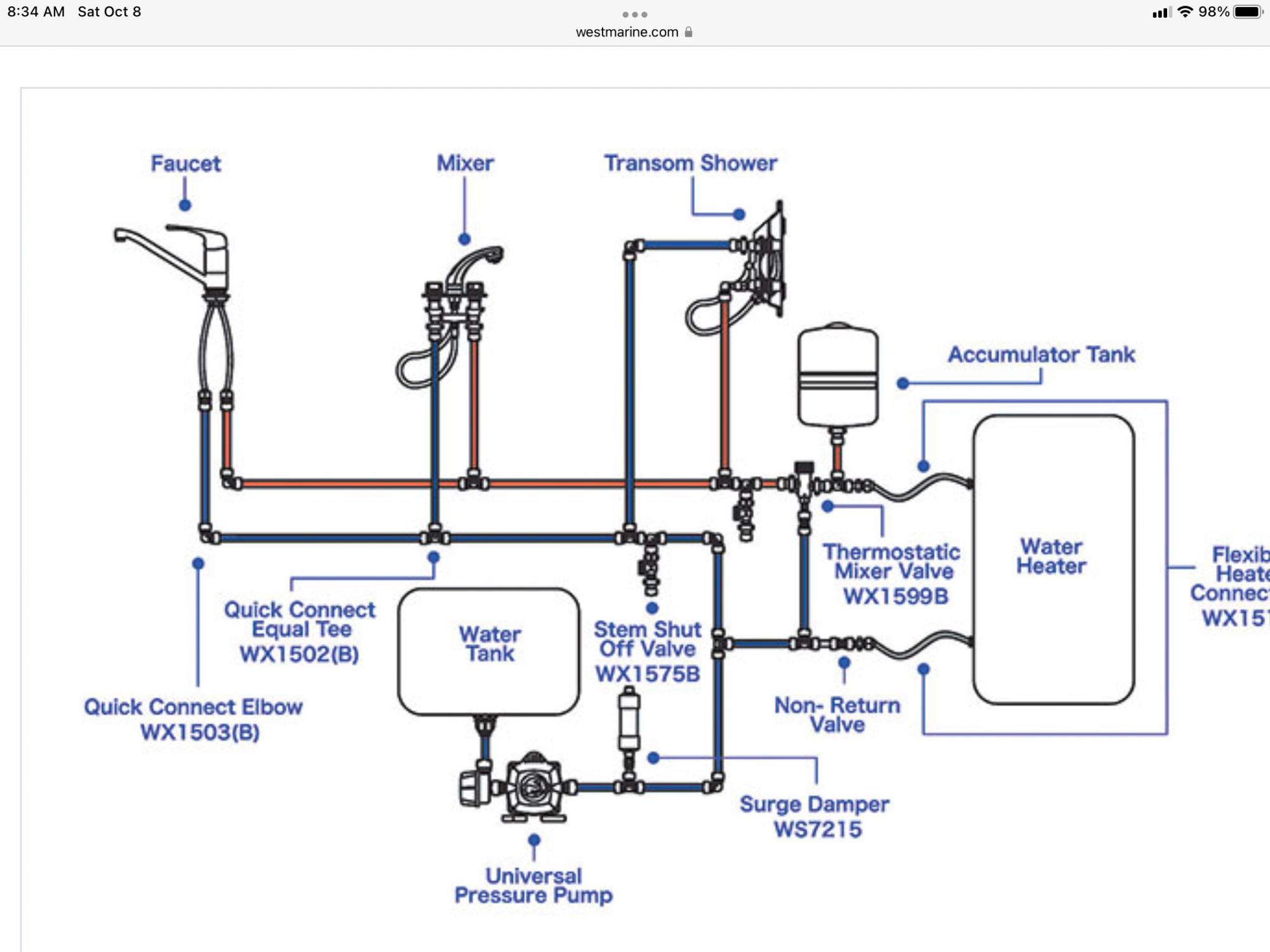I bought a 2002 456 CC last year and am spending the next few seasons getting to know her before doing any prolonged cruising around New England. I noticed a few months ago that my freshwater started to smell and finally got around to flushing the system. I have the boat on a mooring, so I procrastinated. Well, when I finally got around to it the lines had some an obstruction...probably some sort of growth in the tank that got lodged in one of the lines. I ended up back-blowing out the lines with compressed air, but in the process was amazed at how much water kept coming out of the lines when they were under "back pressure." I don't believe there's an accumulator tank in my system (in normal use the pump always runs when I turn on the water), but wondering if the hot water heater was acting as an accumulator. Any thoughts or experience out there? Semper Sailor