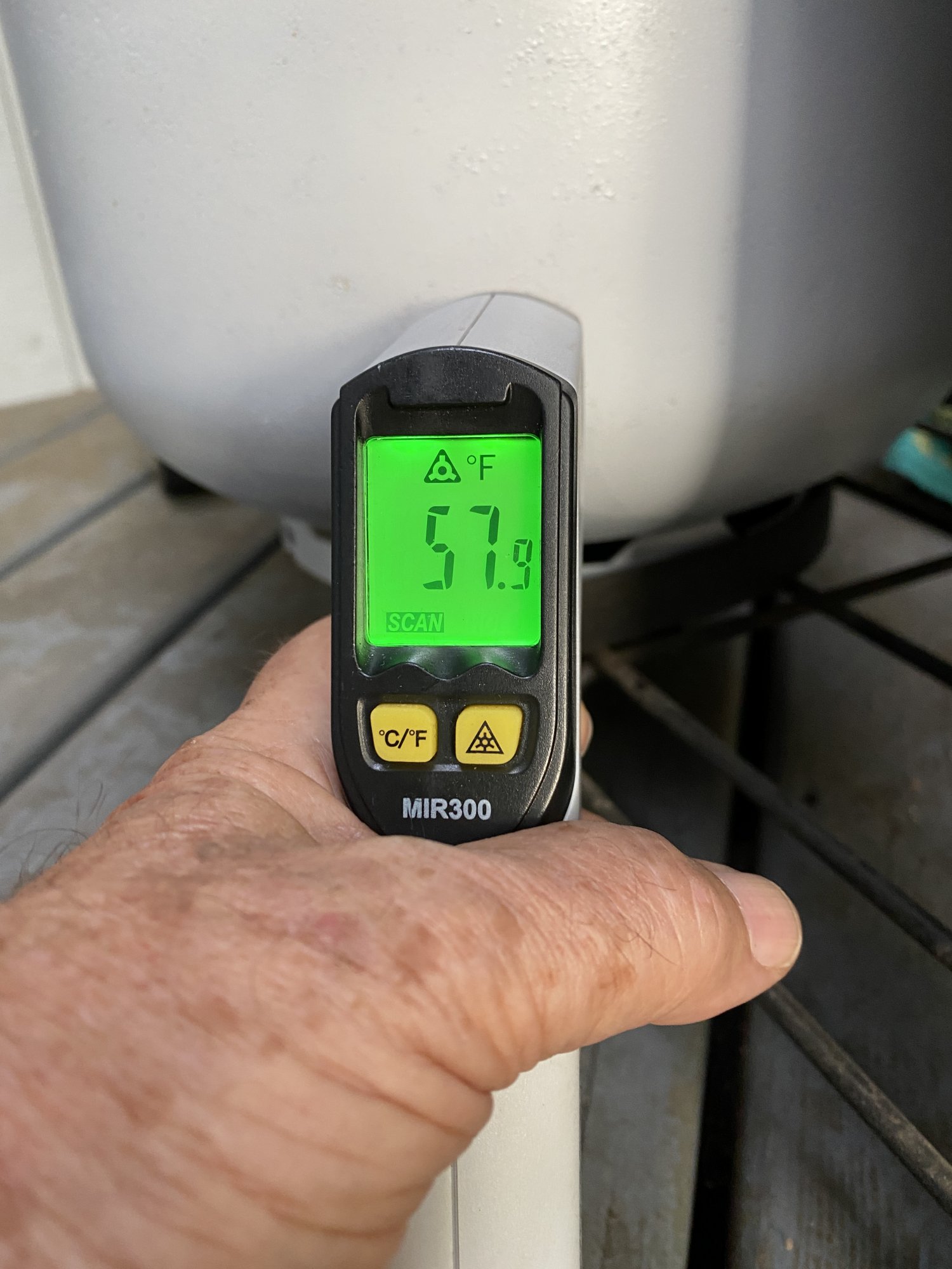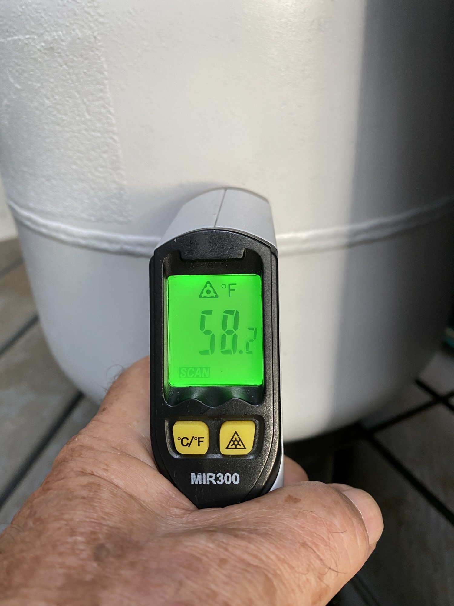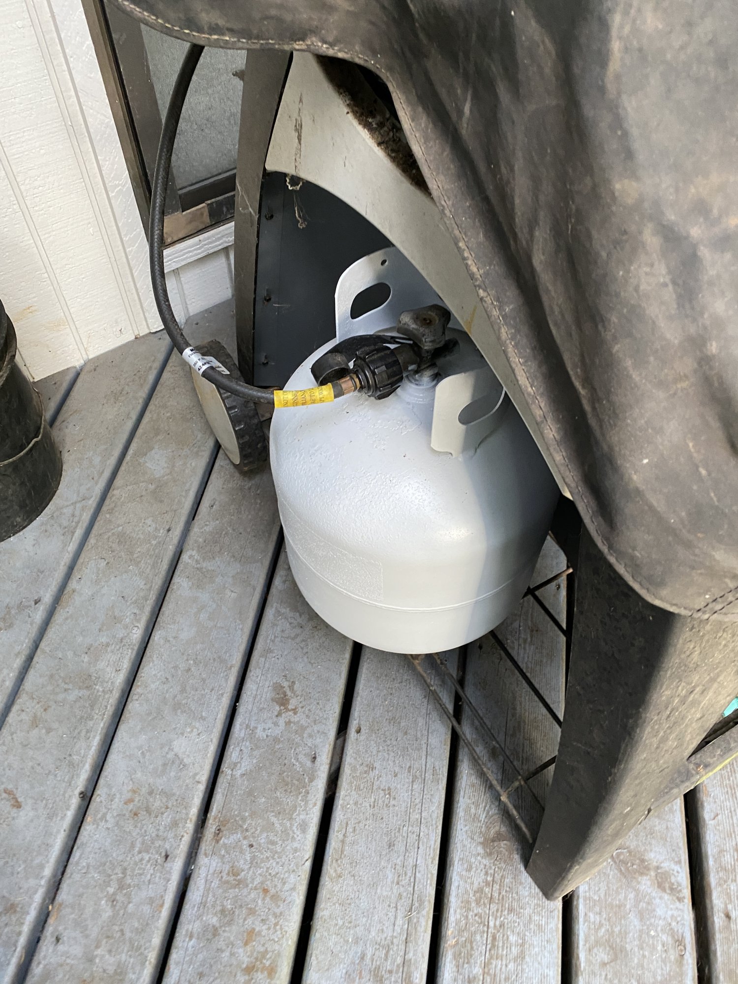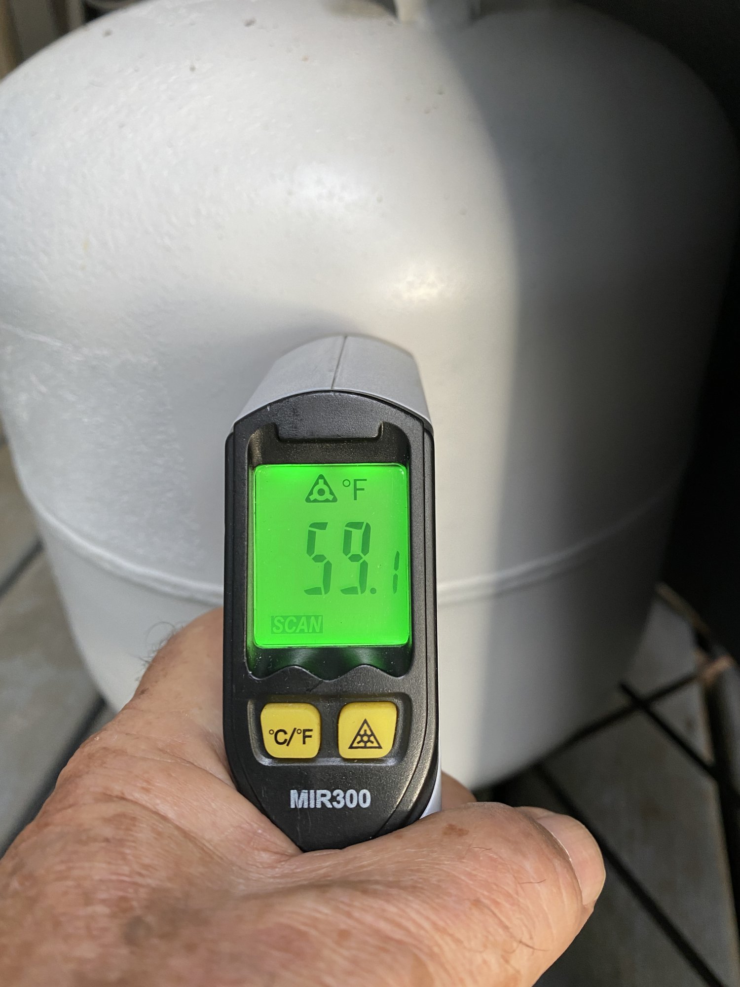 Grill Propane tank. Stored outside over night. Has not been used in several days. Tank has been closed so should be stable. Ambient air temp 54.