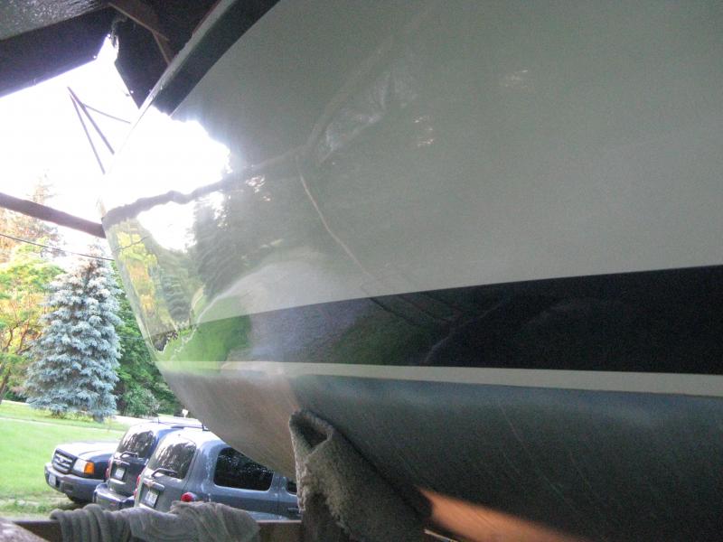 Holy smoke that is a sweet looking boat. Check those bulkheads at the upper shroud chainplates. Something looks strange with the wood color. Here is a first time gelcoat job. The original color was cream and green. I have never sprayed gelcoat either.
