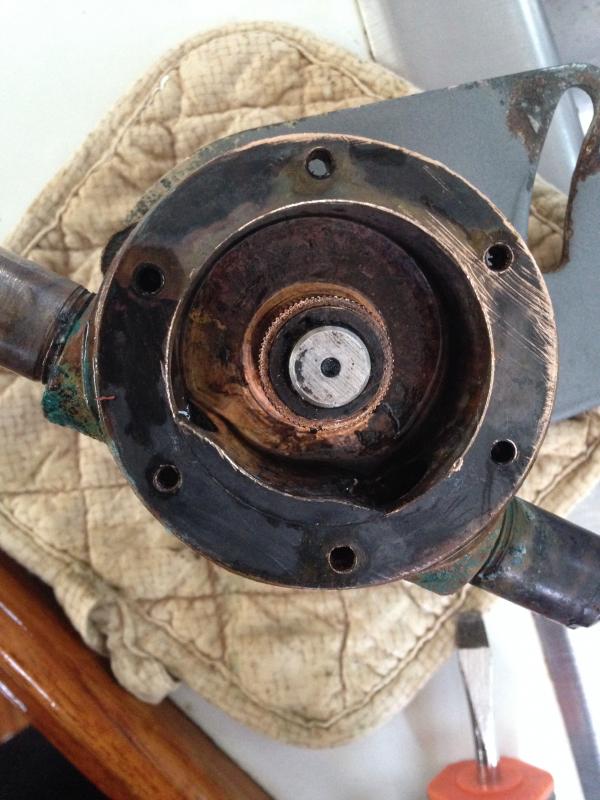 Last year I cleaned out & replaced the impeller and gasket on the raw water pump because the engine was overheating (see pictures). The impeller was destroyed (broke into small pieces). I thought the problem was fixed but now about 40 engine hours later I'm having the same problem. I replaced the impeller again but the engine continues to overheat. I confirmed the following;