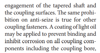 That statement is going to take one hell of a pile of analysis to convince me how the shear strength of a shaft key is going to be reduced by introducing a contact surface of anti-sieze.You can make the argument that some kind of lubricant, anti-seize, whatever will help the corrosion issue, but ultimately you're taking away from the capacity of the coupling to transfer torque to the shaft.