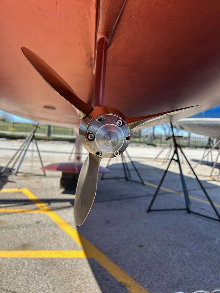 You're just trying to show off your shiny new prop againI have sanded the rough and flaking spots, smoothed things out and then repainted with VC17. As long as you get the flaking stuff off, and get it as smooth as you want…wipe with some solvent and paint.