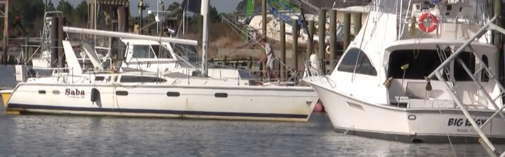 Repairing boat after Hurricane Zeta