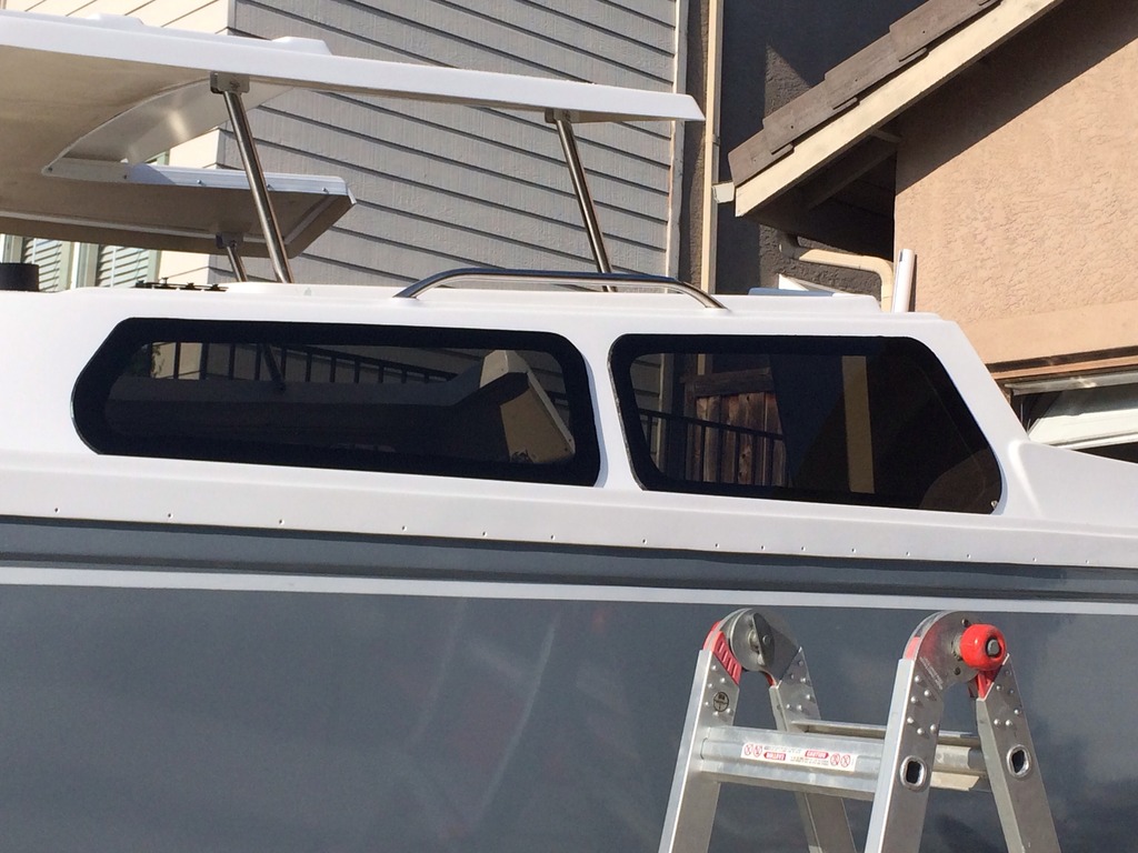 I did this job on my C22, it only cost me $100 to buy the plastic and I cut myself. I did use 3M VHB tape but I shot myself in the foot with the process I used; The pro's will paint the inside edge of the window black because usually VHB tape is grey and you would see the grey tape through the plastic. Mine is as dark of a tint as they have available in Lexan but you can still see through it. The black VHB tape Andy uses in the Boatworks Today video is only available in 3/4" or 1 inch, mine was only 3/8 wide and Grey. Anyway, I wasn't sure about what kind of paint to use and I wan't confident the paint would stick to the smooth Lexan. So I though I was smart and I knifed a very thin coat of the Dow 795 to the bonding lip of the window. This seemed like it was going to work great until I discovered that the 3M tape will not fully stick to the cured DOW 795! I had to think fast so I ended up using just a few screws that firmly held the window in place (still using the 3M VHB tape as a gasket to maintain spacing) and I caulked in the 795 around the outside edge and then also on the inside. When it was cured I took the screws out and put just a dot of 795 in to fill the holes, it came out fine and the 795 is doing all the work. Note, my 'bonding edge' or perimeter of surface contact was 1.25 inch all the way around. Kinda overkill, I should have done it only 1 inch, but it still looks good.