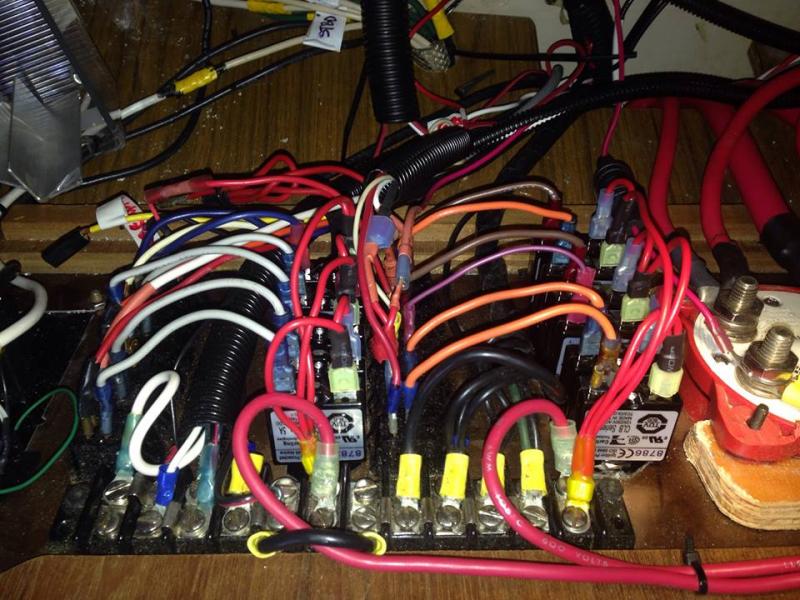 I finished the DC panel project. I drilled out 1/8 in plastic to hold the CB's tight. The panel had switches and fuses on 3/4" centers and the new CB exterior rings fit well except for some tolerance issues, the rings on the new circuit breakers are like exactly 3/4in dia. Here is a pick of the new thing. Yes I posted the AC panel previously, only one picture uploaded, I was trying to do a couple. There were also some issues with the lengths of the wiring, since the circuit breakers are a bit larger on the backside, I ended up redoing all the daisy chain distribution wiring, there were more than a few melted connectors.