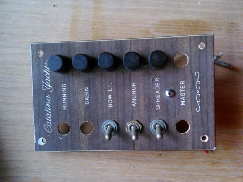 - How's the condition of the rest of your existing panel? I ask because a few years ago I encountered at a nautical swap meet a switch/fuse panel off a early vintage Catalina (pic attached). I've cannibalized it from time-to-time when I needed switches for projects (non-boat.) A couple of the switches I removed were in questionable condition. The wire that leads into the switch housing on one simply fell off when I removed the switch from the panel. So you might want check your panel before spending any time modifying it. Could be you discover that your panel really needs replacing and you could end up finding a way to fit a new panel into the tight space.