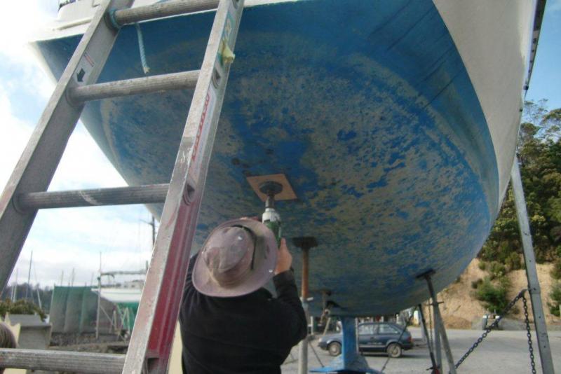 Great information, just a few things . How thick was the hull in that area? And do you think you had any water inside your rudder? Also, did you find any blisters (osmosis) around the area you repaired ?