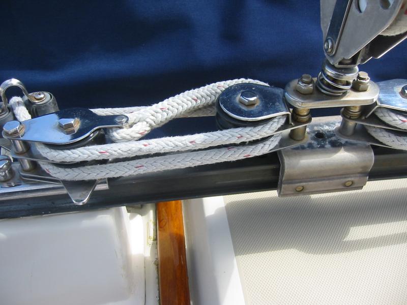 http://sailboatdata.com/viewrecord.asp?class_id=3137 it definitely looks like the ideal place for a traveller is right at the companionway, or spanning the seats over the bridge deck. Because the seats are contoured, and the flat bridge deck is too narrow, you'll have to build a bridge over the seats as Joe (Trinkka) has done. He's got pics in his profile photo album, if I recall. You can't put the traveller at the aft edge on top of the house, because then you'd have a hard time getting in and out of the cabin. And if you put the traveller on a bridge over the hatch just at the aft edge of the hatch when it's slid fully forward, then you're right along the boom about where the vang bail is attached - too far forward on the boom.