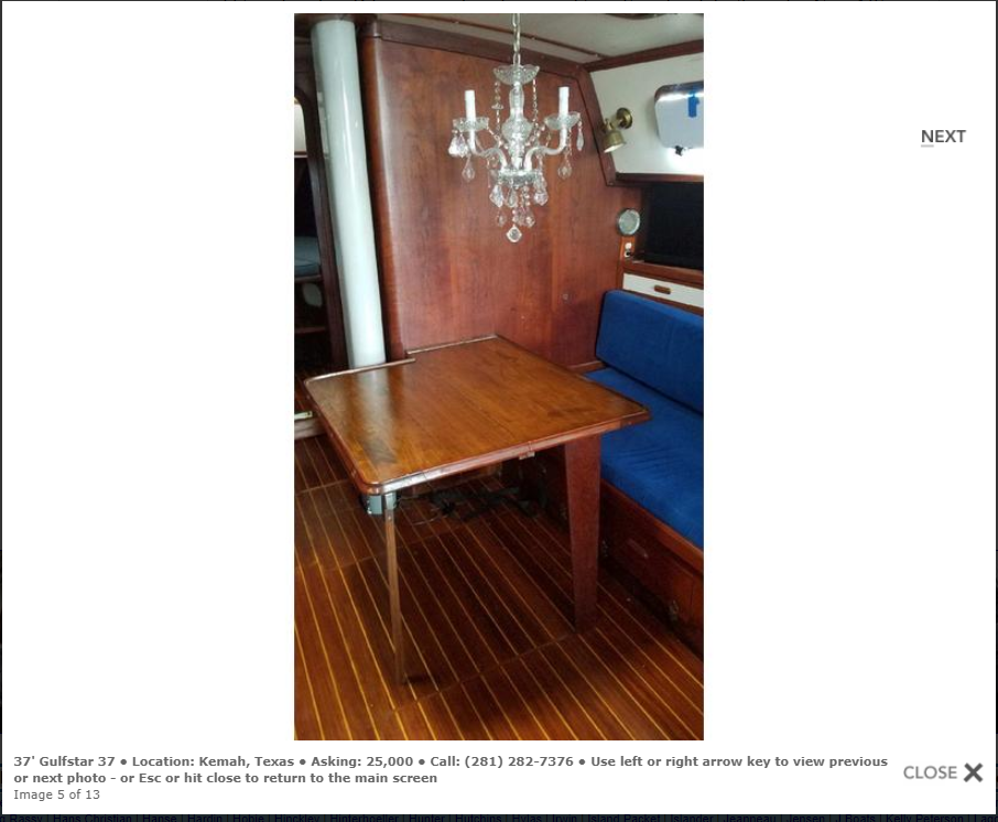 A dining room candelabra gives me a laugh. Motivates me to look at the critical elements of a boat, and ignore the distractions. This boat may have some funky wiring. Wonder if they used wire nuts.