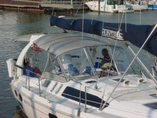 Thanks David - we trashed our existing navy bimini and started over.Cost was $4000 for new dodger with SuperClear front glass on dodger, chafe pad on back of dodger, outside hand holds on each side of dodger,Replaced both bimini frames w/1" heavy gauge stainless, eliminated all bimini hold down straps using cantilever frames, solid connector between dodger and bimini, 12x24 aft bimini window with no cover.I am not sure what the per yard cost is but I can find out if you want to know.Trashed the old frames and navy bimini.