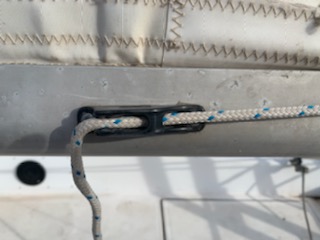 On the mast side of the boom, there is a small line attached to the tack. I used it to hold the boom down so when I raised the main sail, the boom stayed down, is this correct?