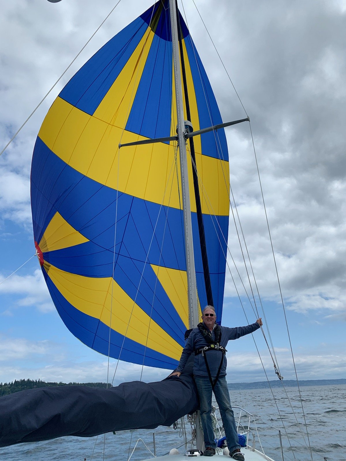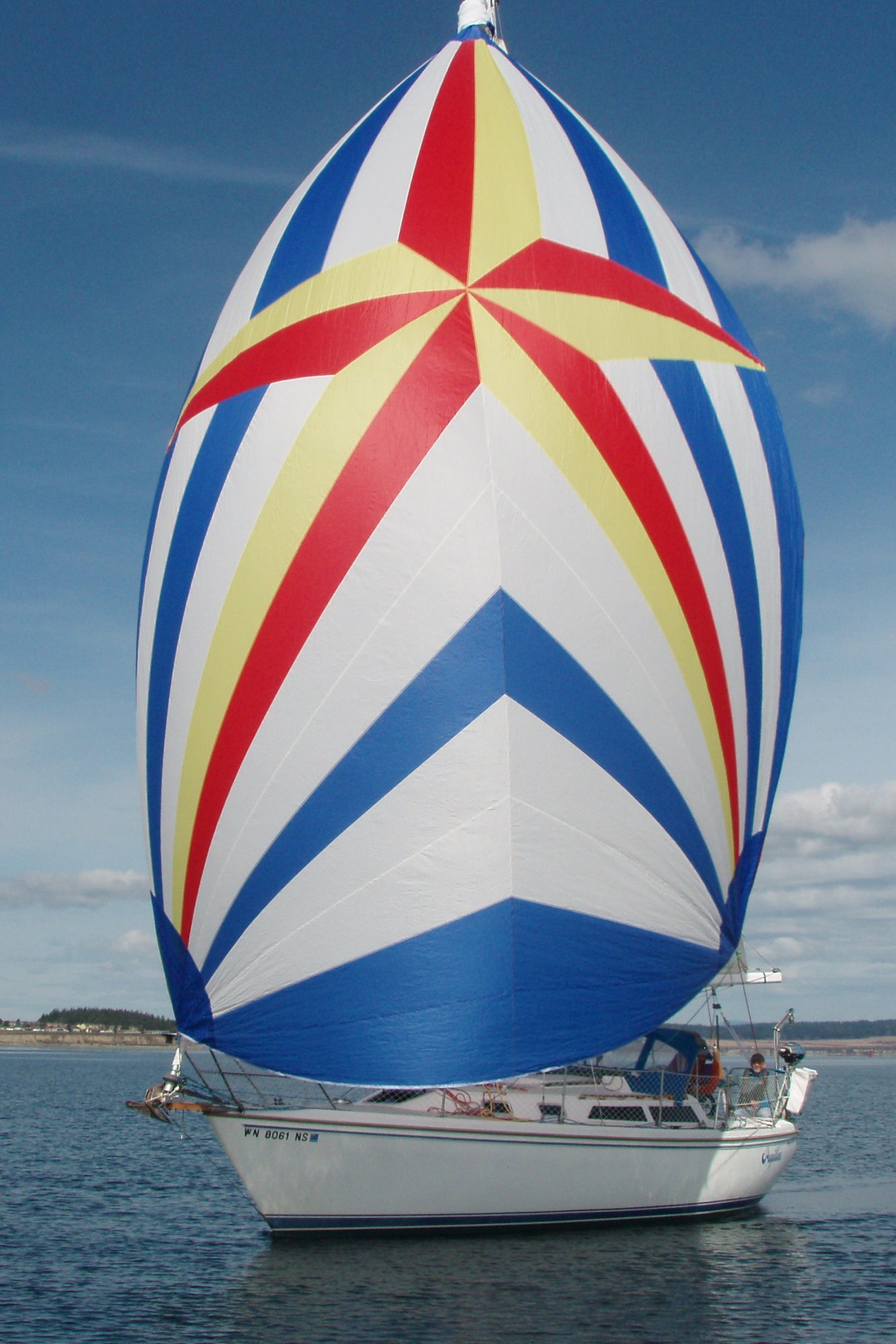 Also found a picture of the spinnaker on a sprit I designed for my former boat. A Montgomery 15.