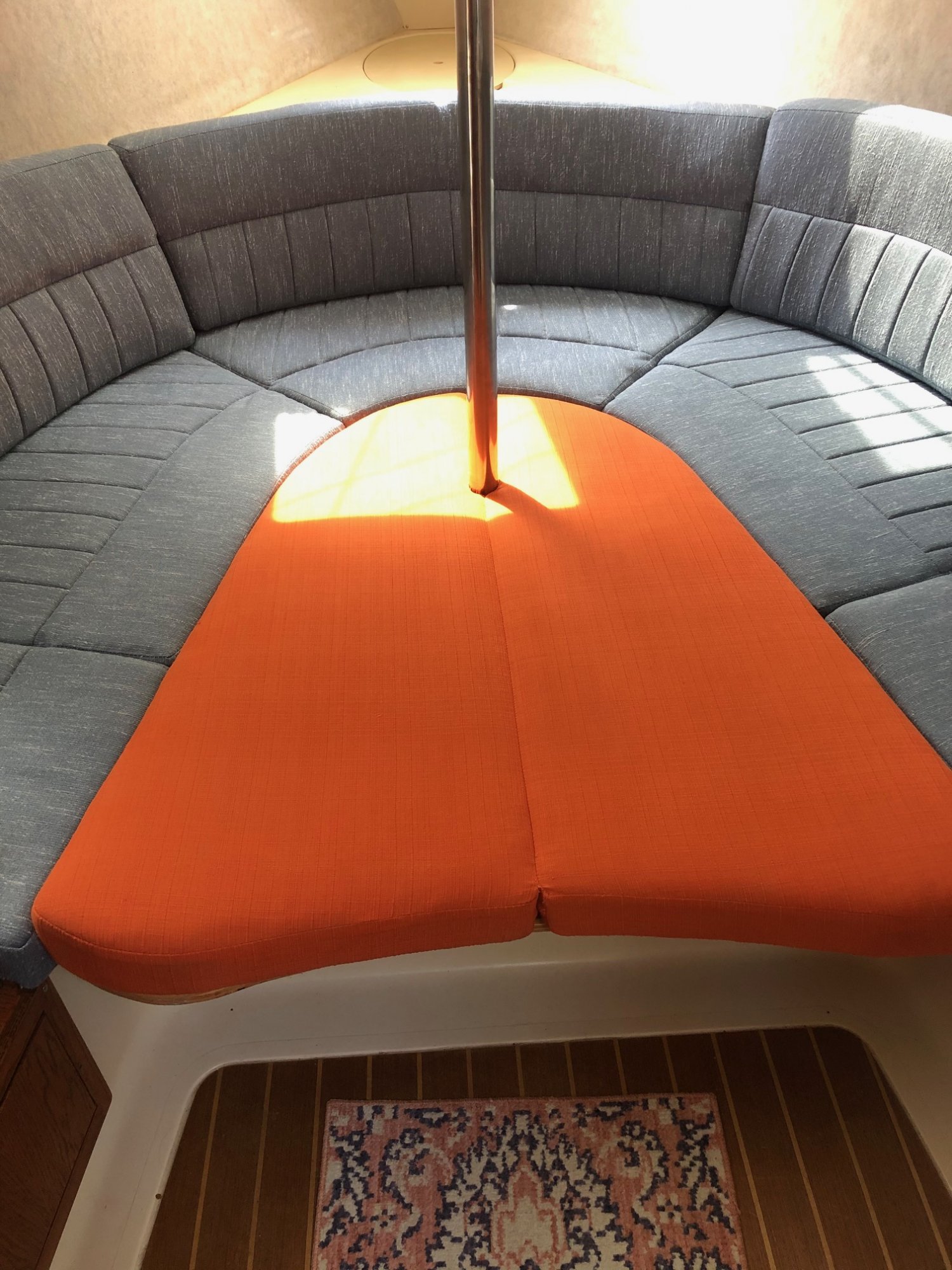 Also made a two piece berth base that stows in the V berth location and a cushion so the dining area makes a WAY nicer berth than the aft berth. (Now for daughter and dog)