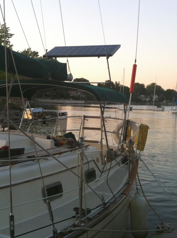 I am pleased, several friends told me it looks great, the cost was under $200 and this with much wasted joints and material. I can put 4 100W panels, shade, a place to catch water, hang bicycles and later on will attempt to build dinghy davits. If you want to try this idea, i will be happy to send you photos and share some hard learned tips.