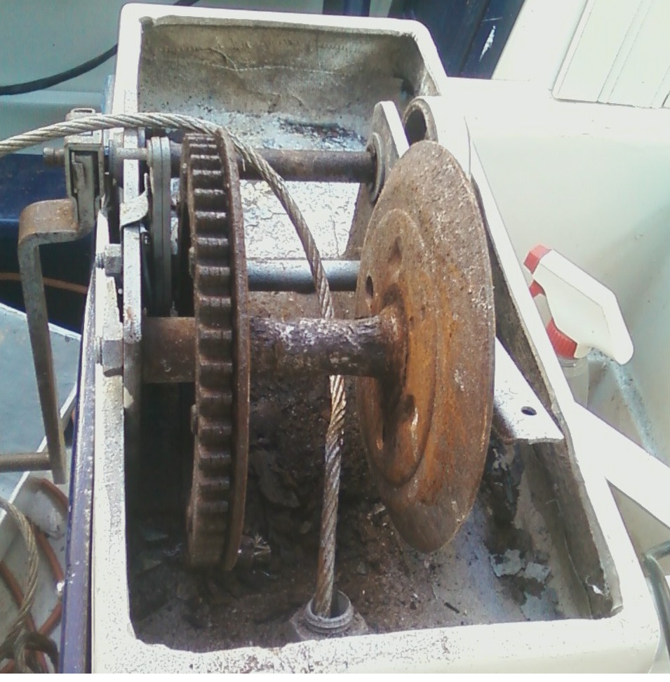 This is the winch I had on my Balboa 26 (1200lb keel) when I purchased it. I thought it was a gonner but....