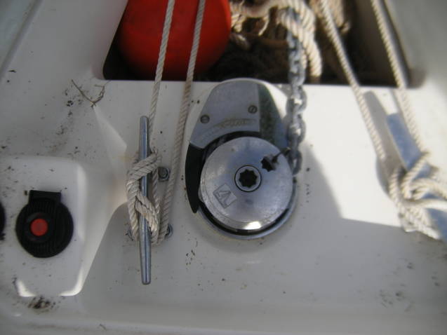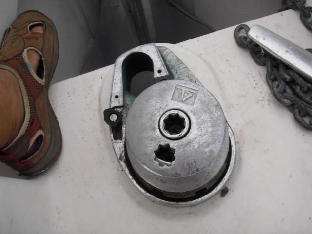 But the chain wasn't routed this way when I got the boat and the chain just wrapped around the gipsy. To me it seemed that the chain went on the outside of the Control arm and then dropped into the anchor chain well . It always looked to me that the Control Arm was there to push the chain out of the gipsy. I don't think there even is a hole for the chain to route though the pipe sleeve into the well (but since I never have really looked at it from forward maybe I'm wrong)..