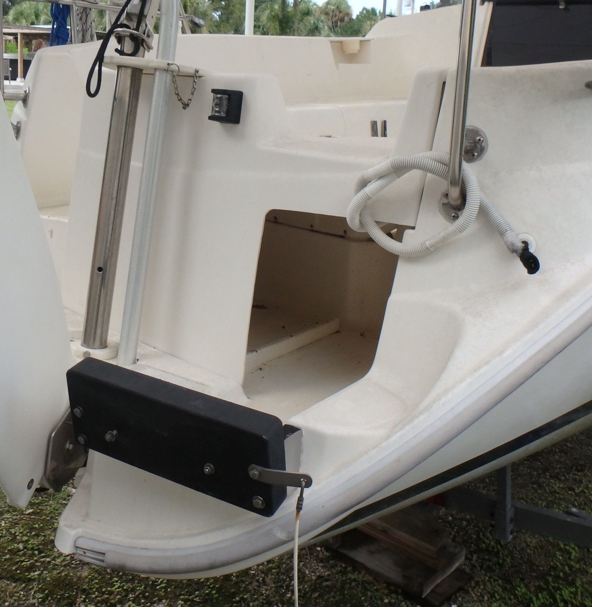 I had an 8 hp Honda on mine and replaced it with a 5 hp Mercury propane. It works fine. I bought the standard Sailboat model without the extra long shaft. The mount on the H240 is very low to the water.Fuel Compartment Transom Opening.jpg