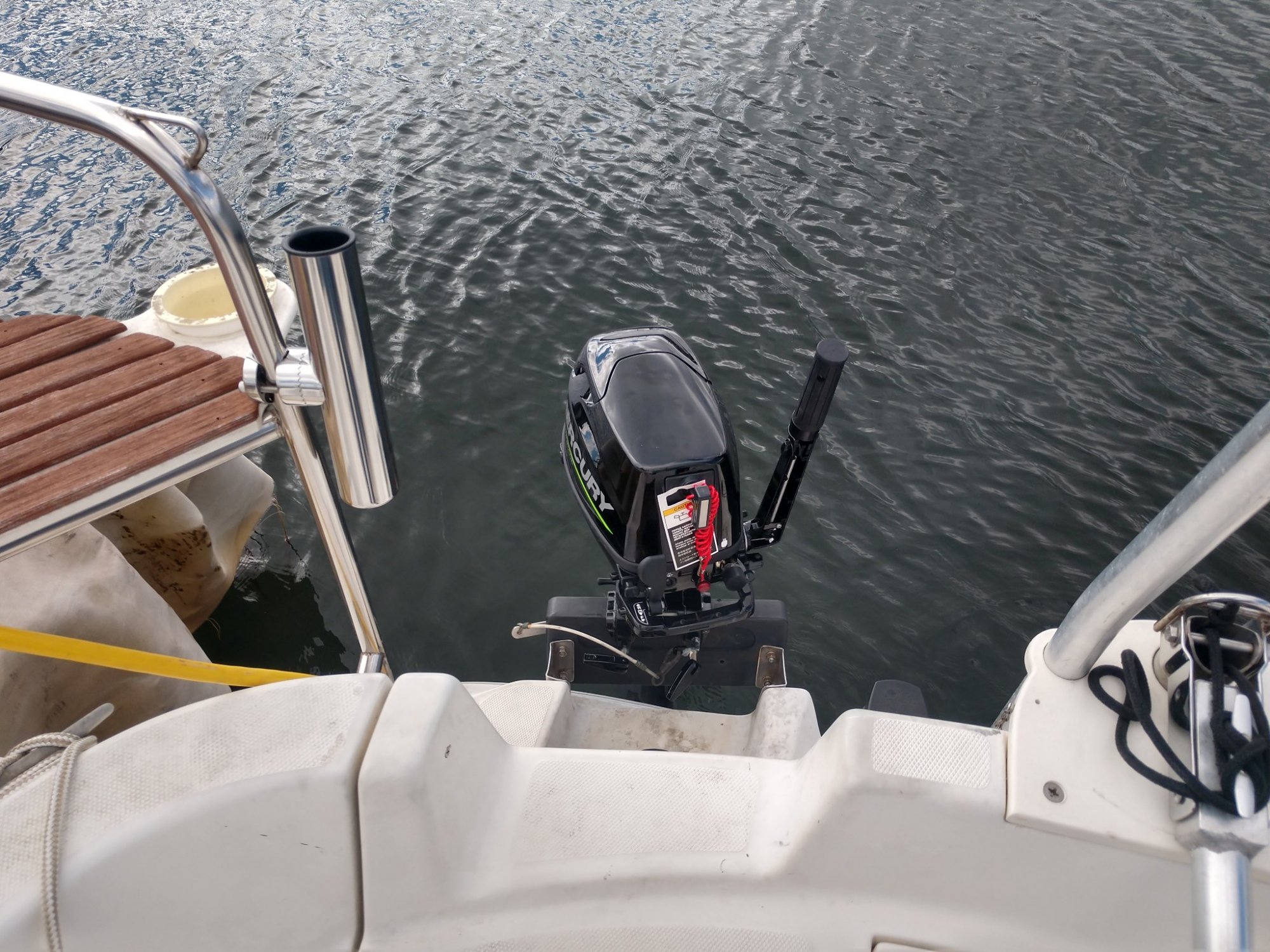 It takes a long arm. I dial up he resistance knob so that is will hold a straight heading and then steer with the tiller. It is awkward when you are docking and need to put her in reverse and turn the throttle. It feels like you are falling off the stern. I have the five HP that they make for Mercury and it is only 57 lbs. It would be ideal if I had remote control that I could use while sitting in one of the stern seats. I could easily dock the boat single handed with my boat hook.View attachment 204594
