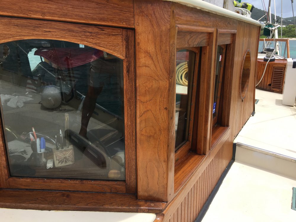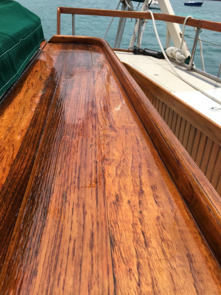 I want to refinish the teak wood trim in the cockpit. Some has old finish still and some is bare. The wood is usually covered from sun exposure.