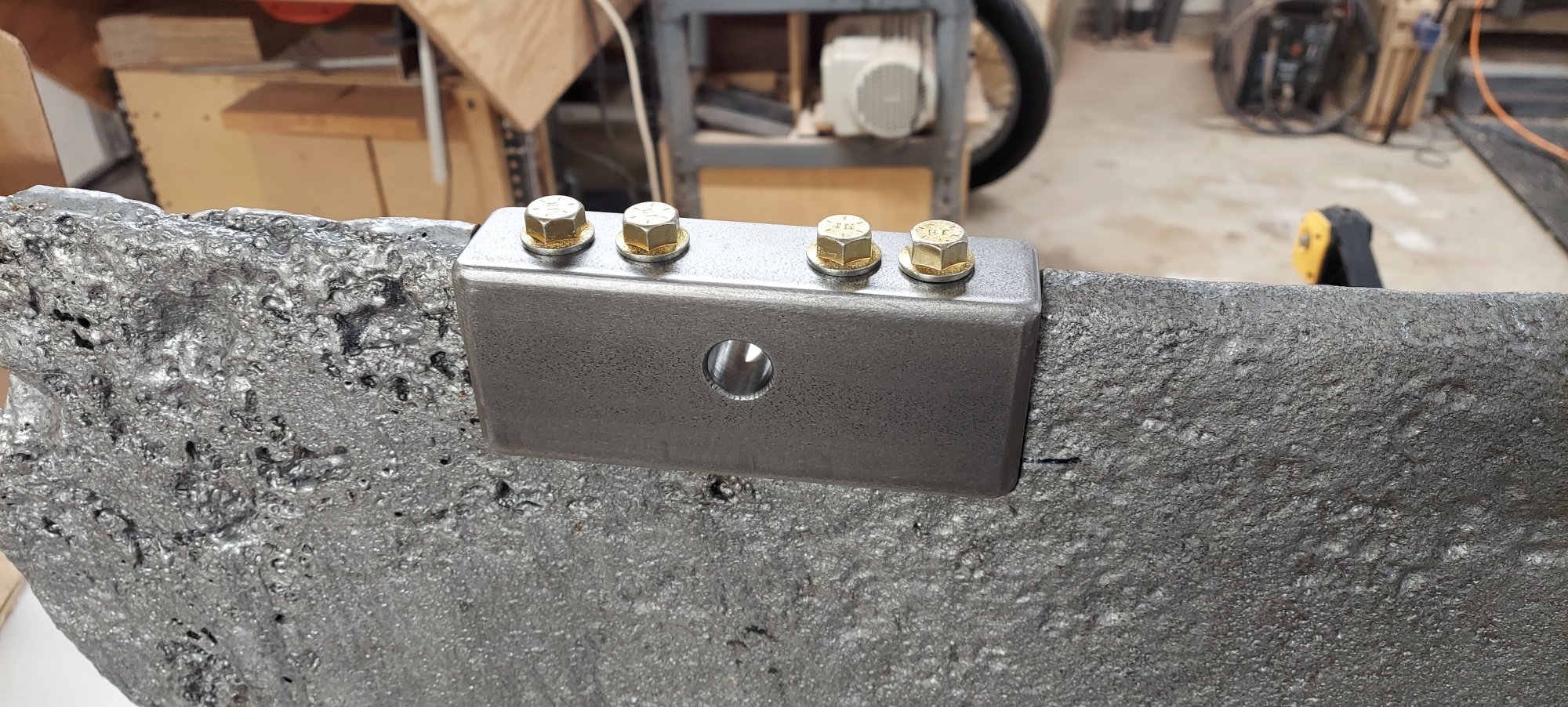 Hardware is grade 9 flange bolts, 3/8-16 with 1 full inch of thread interface with the iron. I tapped holes into the peice of iron that was cut out and performed thread yield testing, the grade 5 bolts snapped before the iron yielded. This honestly surprised me, but hey, that's why I have a full inch of tapped depth.