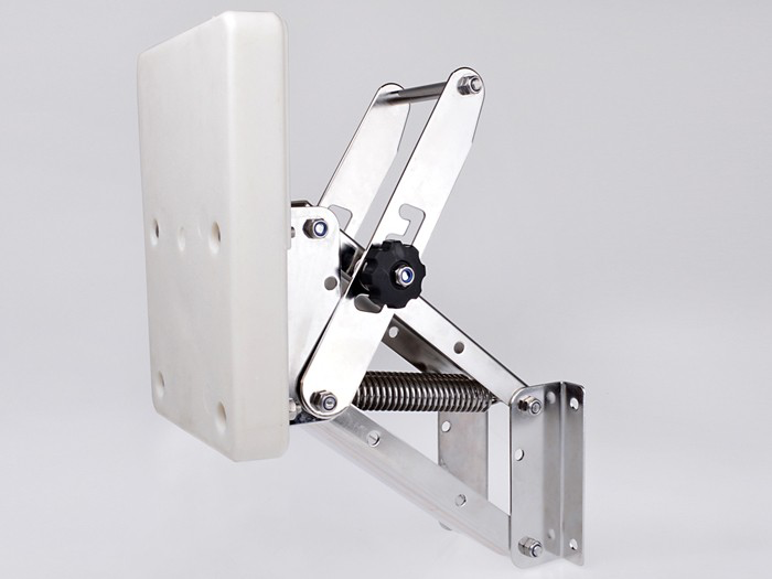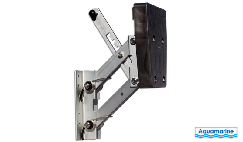 I would through bolt something like what @jssailem listed in post #2 into your transom with a sturdy backing plate of SS. just get one with the longest arms you can find so you can lift it avove the aft sheer when not in use.. and that would allow you to tilt it up so you don't drag the prop when heeling hard.