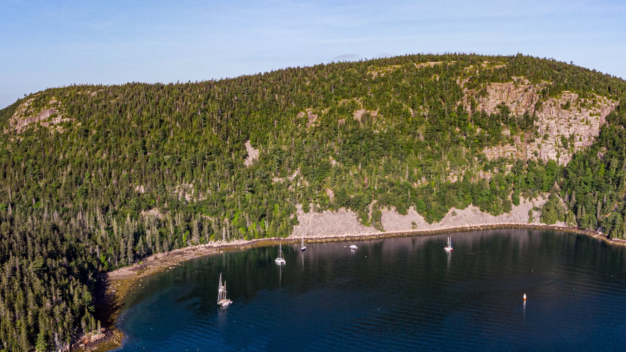 Picture us from last summer's cruise in Maine, Valley Cove in Somes sound, Mt Desert Island. My boat is the red one in the two boat raft on the right, My friend Jon Linn took this drone picture. View attachment 172533