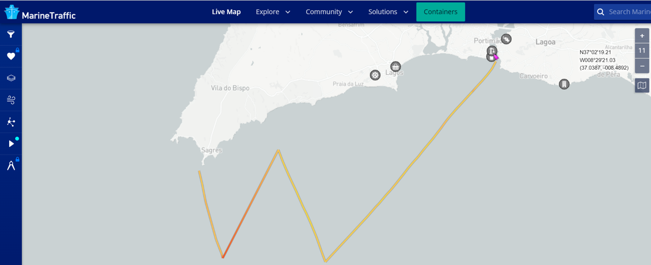 We arrived in Portimea just a bit ago. We are out having dinner - wifi from restaurant...Looks like they're almost where they are headed today: