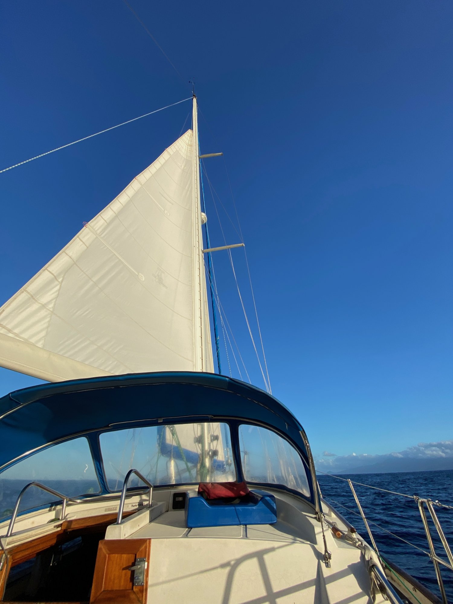 Had a squall blow through about 0610 just after I went on watch. Sea state up to 2 m. Running on staysail and reefed main. Winds gusting above 25. Could not see the gauge for the driving rain.