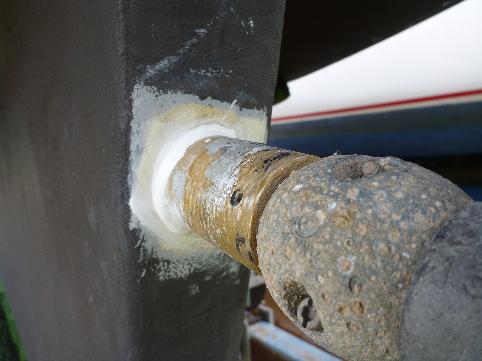 I recently saw that there was a little water coming in the boat and that it seemed to come from around the stern tube. I always get a little rusty water underneath my shaft and pss. Im pretty sure its not the pss. When i looked back at the pict i took before putting the boat in water, i remarked a rusty color, same color as I was getting in the boat under the shaft. Im wondering what could it be, and what should I do? When I hauled the boat out of the water the water I had inside disapeard...