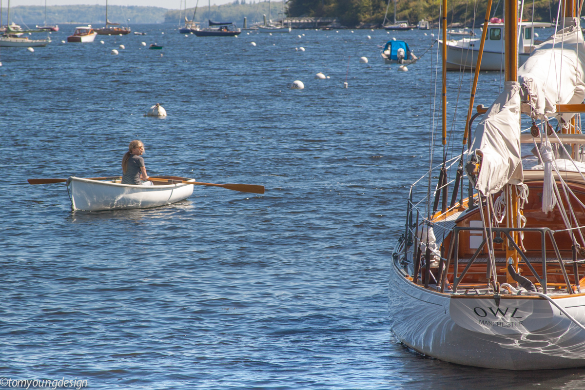 That is a beautiful picture!Totally! The Puffin dinghy's are very popular around my neighborhood. They row and tow well and I rarely see an outboard on one (a good sign). Err on the long side for your oars, you'll be glad you did.