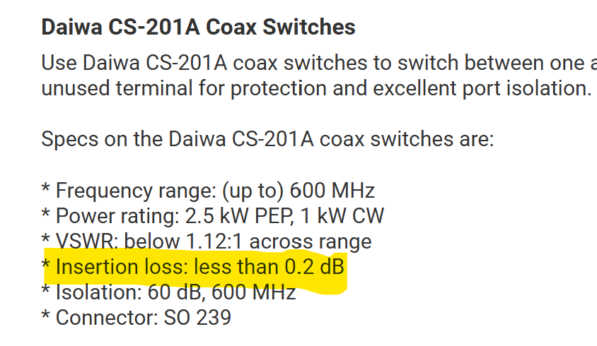 ”less than 0.2dB” is correct. “Introduces 0.2dB” is not. In actual practice, a good quality switch such as th Daiwa I have introduces no loss. Coax switches are ubiquitous including ham radio stations where every minor loss is important.
