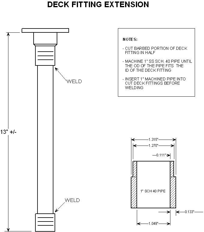 Back from the machine shop with this weird looking 13 inch long deck pump out fitting and we're ready to install.