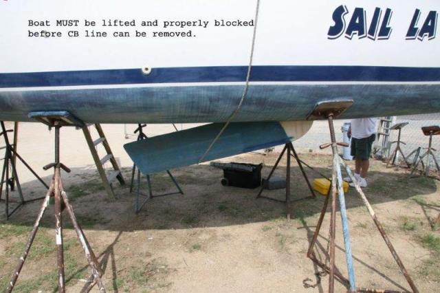 I have a 1998 Hunter 260WB that we bought in 2009. We've never had the boat out of the water and I was wondering what kind of keel out boat had. (Winged, swing, etc.) and the approximate dimensions of the keel. I've attached a photo of the lines on the top of the boat. Does the white line move the keel?