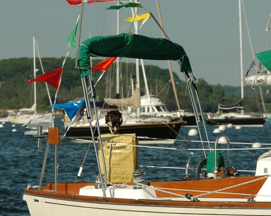 Took these pictures in the harbor last week. It seems the guy with the Tartan 34 has had trouble with birds in the past so he rigged up some used car flags. It's a nice look (if it worked)... Unfortunately they don't phase the Osprey. A few weeks ago he tore apart a Striped Bass on top of my bimini and damn near ruined it! When is Osprey season???