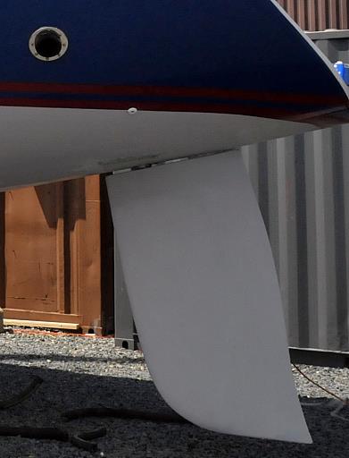 As shown by the picture, this is a spade rudder. It's 12 years old and has about 40,000 miles on it...
