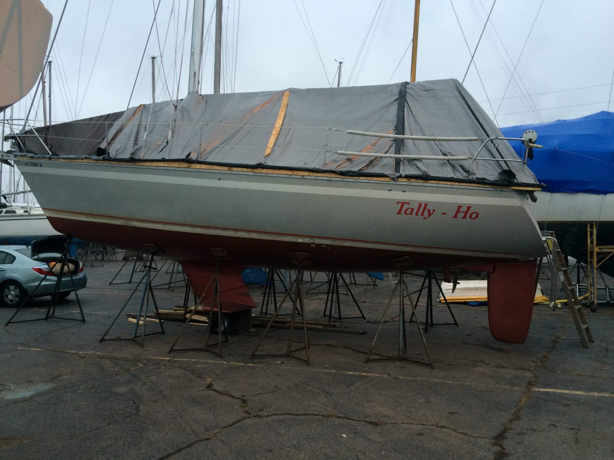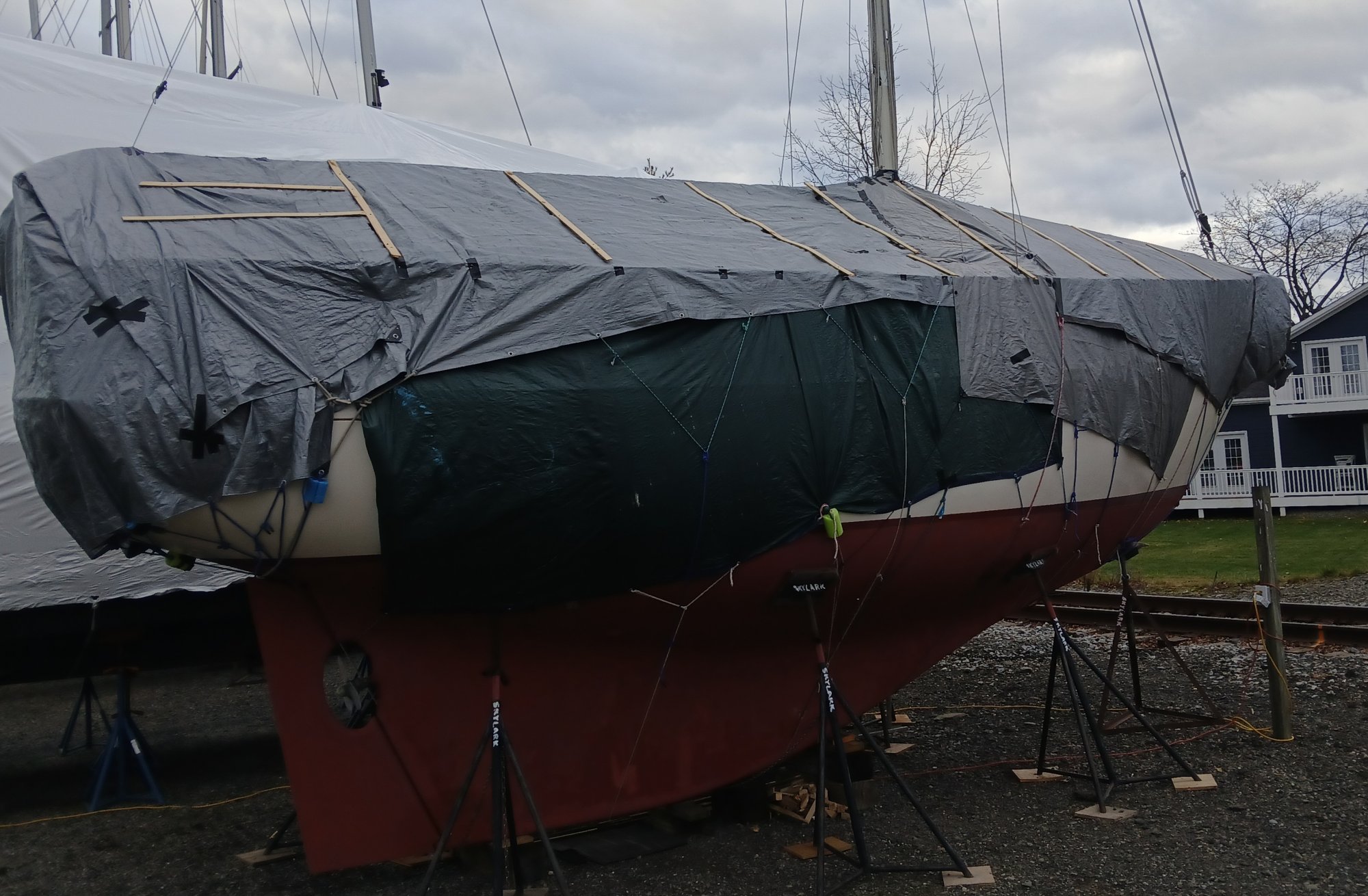 The first year I owned Tally Ho, I did a tarp. Very labor intensive and I built a wood frame to secure the boards holding the tarp in place. Took days and a day to take it off ( sacrificial tarps).