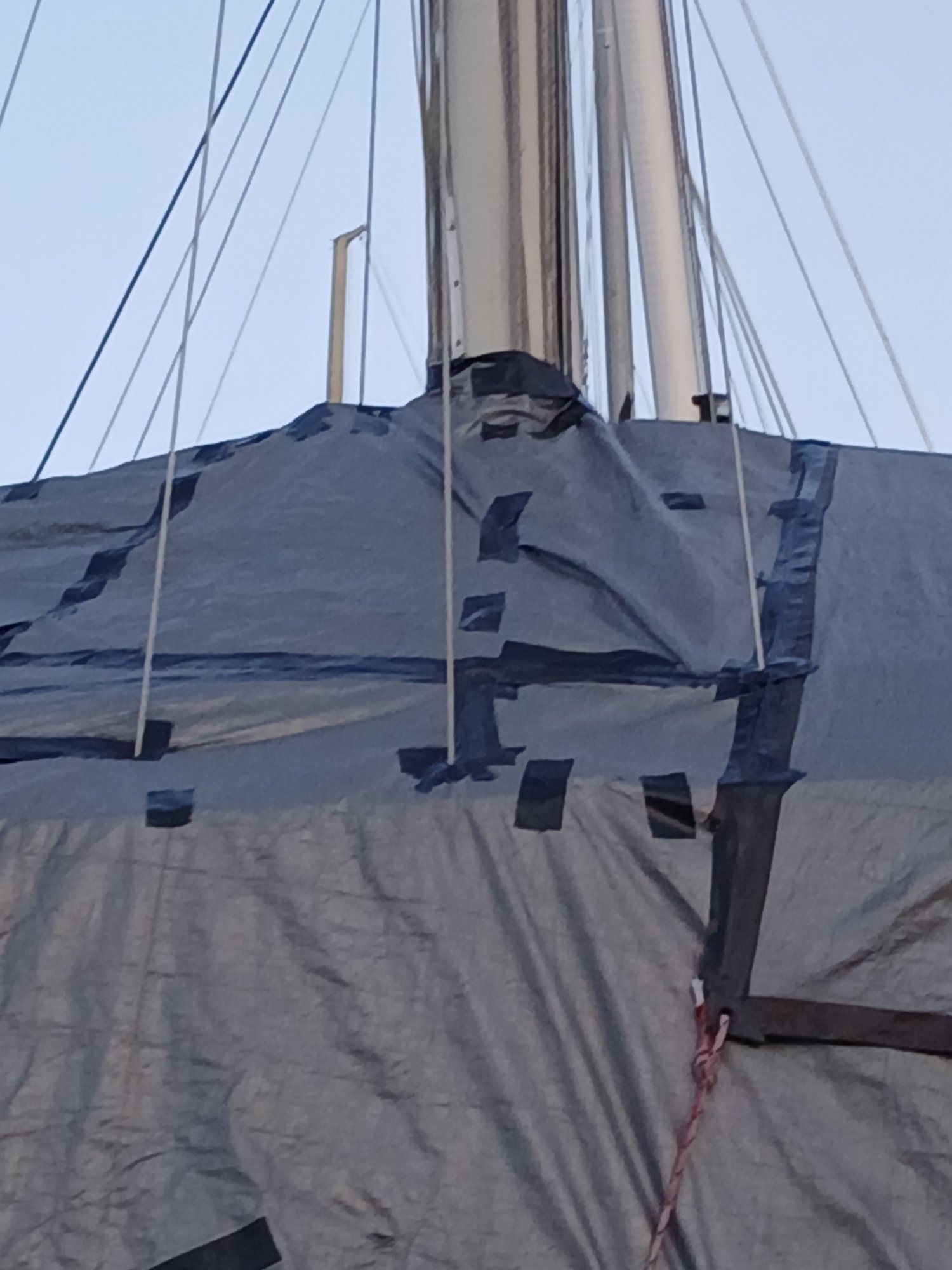On the other hand I have also gotten comfortable with "tailoring" (cut & tape) to fit around shrouds and stays; I am at a yard that allows us to keep the mast stepped for the winter.